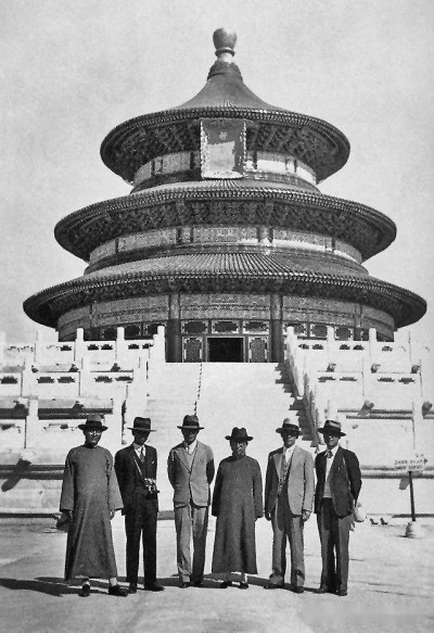 1935年5月9日,天壇圜丘壇開工,朱啟鈐、梁思成、劉敦楨、林徽因等古建專家,作為工程的技術(shù)顧問,楊廷寶則以基泰工程司總建筑師的身份指導(dǎo)工程實(shí)施的全過程。圖為祈年殿修繕完工紀(jì)念照。資料圖片