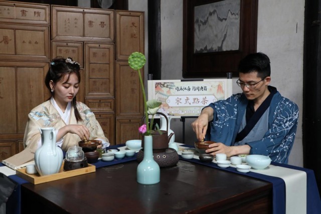 “詩畫江南 行閱典籍”曬書活動之“宋式點茶”。費騰輝攝