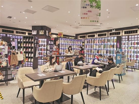 書(shū)店依舊是靚麗的模樣,雖然沒(méi)有了往日人潮涌動(dòng)打卡的場(chǎng)景,但明亮的店內(nèi)并不乏讀者安坐閱讀,靜謐中透著溫馨。