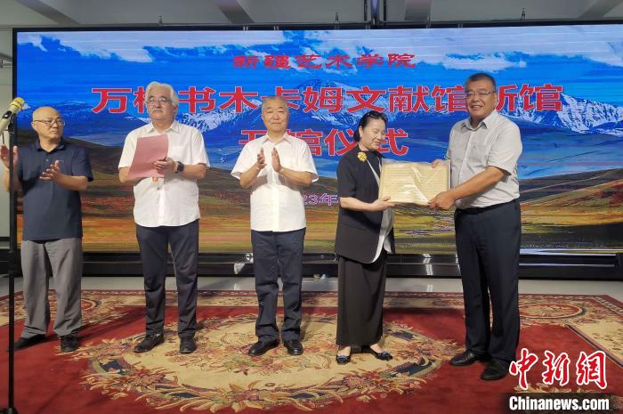 中新網烏魯木齊7月20日電 (胡嘉琛)“木卡姆記譜手稿不應塵封在書柜,應當讓更多人了解它、傳承它。把它交到專心做研究的學者手中,我很放心。”萬桐書之女萬靜20日在新疆烏魯木齊說。當日,萬桐書木卡姆文獻館新館在新疆藝術學院開館,萬靜將萬桐書1952年至1957年間收集整理的木卡姆記譜手稿贈給校方。