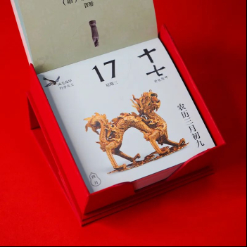 如意取出第一層里紅紅的燙金書(shū)刊盒,馬上發(fā)現(xiàn)了它的小機(jī)關(guān):原來(lái)盒蓋上有個(gè)吸鐵石,把它翻過(guò)來(lái),就可以25度傾斜地放在書(shū)桌上,舒服地翻閱一整年的“日子”;每一天的頁(yè)面都能被絲滑地撕下,作為小書(shū)簽,插在課本讀物中。