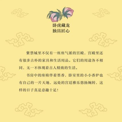 從2月到12月,如意更發(fā)現(xiàn)了“龍生九子”的故事,原來(lái),在鐘鈕上的龍子叫“蒲牢”,在宮門(mén)上的龍子叫“椒圖”……在古老的龍家族中,有把身子彎成S形的螭龍,有在空中振翅飛舞的應(yīng)龍,還有拱起身子趴在壺上的蟠龍……精選的故宮官式建筑上的和璽彩畫(huà)、大氣精美的九龍壁和千龍吐水的螭首奇觀,都讓如意著迷而向往。