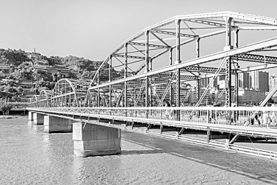 以百年時(shí)間看黃河,《黃河中國(guó)》彰顯黃河古文明之上崛起的現(xiàn)代文明。在書(shū)中我特意寫(xiě)了三座百年黃河鐵橋,它們分別是蘭州黃河鐵橋、鄭州平漢鐵路黃河橋和濟(jì)南濼口黃河鐵路橋。一百年放置在歷史長(zhǎng)河里不算長(zhǎng),卻是一個(gè)較為合適的觀照近現(xiàn)代中國(guó)發(fā)展的時(shí)間點(diǎn)。從擺渡、繩渡到石橋、木橋、浮橋、鐵路橋、公路橋,橋梁建筑史的發(fā)展足以證明人類(lèi)社會(huì)的進(jìn)步。黃河上最初修建鐵橋的歷史在晚清末年,正是中華民族處于內(nèi)憂外患之際,光緒二十六年(1900)清政府決定修建平漢黃河鐵路橋,這是黃河上的第一座鋼鐵建筑,然而在1938年抗戰(zhàn)烽火中,為阻擋日軍進(jìn)攻,被炸毀了,現(xiàn)在只剩下5孔橋墩。以5孔橋墩存在的黃河第一座鐵橋,象征著黃河上現(xiàn)代工業(yè)文明的興起與民族深深的精神創(chuàng)傷。如今80多年過(guò)去了,鄭州地段已經(jīng)修建了十余座黃河橋,每一座都很現(xiàn)代很漂亮。自新中國(guó)成立以來(lái),黃河安瀾75年,從戰(zhàn)火紛飛到國(guó)泰民安,黃河是國(guó)家昌盛、民眾幸福的最好見(jiàn)證者。