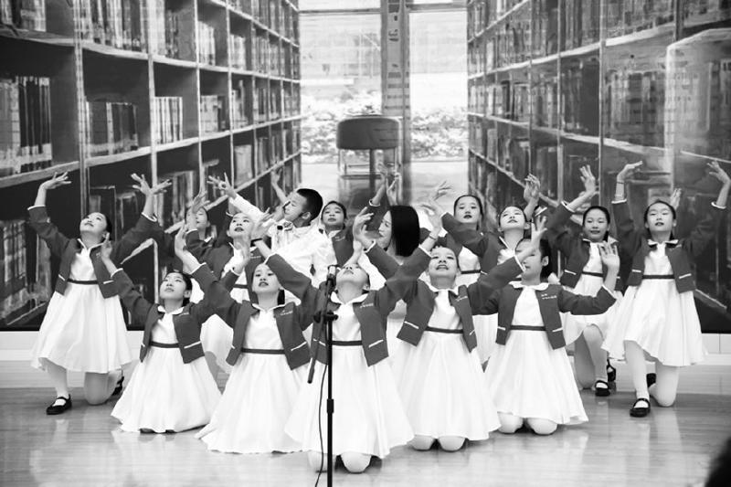 遼寧省開(kāi)原市民主教育集團(tuán)“納蘭合唱團(tuán)”在發(fā)布會(huì)現(xiàn)場(chǎng)表演節(jié)目《老師》,以表達(dá)對(duì)老師的熱愛(ài)。 遼海出版社 供圖