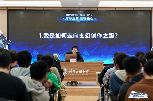 本次分享會再次邀請知名網(wǎng)絡(luò)文學作家天蠶土豆作為主講嘉賓,與讀者們面對面交流,分享他的寫作技巧和創(chuàng)作趣事,在互動環(huán)節(jié)解答讀者對網(wǎng)絡(luò)文學作品的好奇?;顒蝇F(xiàn)場熱情積極,在靜安區(qū)圖書館充滿書卷氣的環(huán)境里展現(xiàn)著獨特魅力。