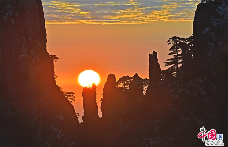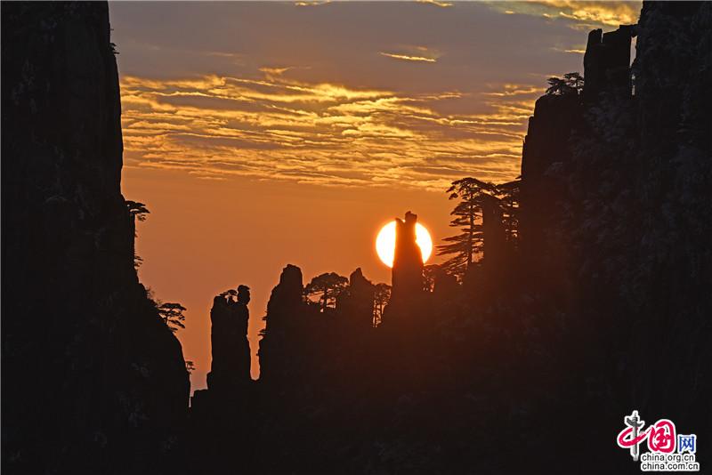 【點(diǎn)睛】新年伊始,黃山風(fēng)景區(qū)迎接今年的第一縷陽光,在一片歡呼聲中太陽跳出了地平線來到了黃山之巔。