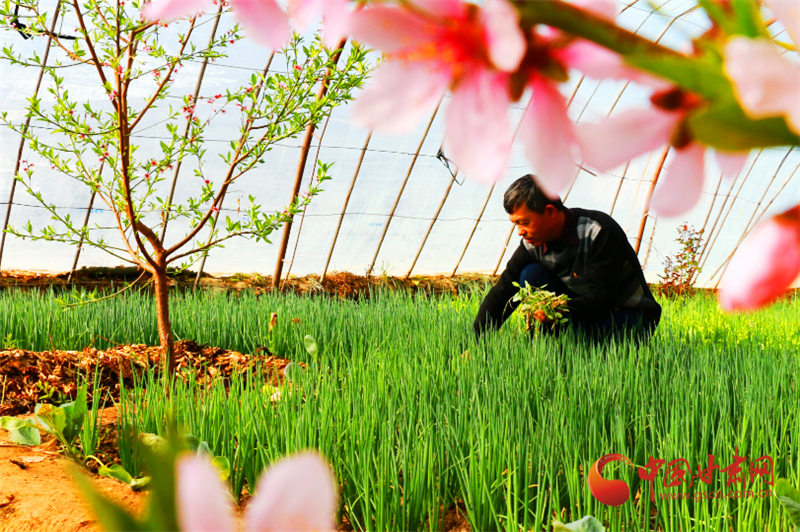 “看看我這桃花開的多好,今年肯定桃兒也能豐收。這是我前年從山東引進的品種,今年就掛果。”陶寶憲說,“我在月牙泉鎮(zhèn)現(xiàn)代采摘園區(qū)種植已經十幾年了,以前年年都種小西紅柿、小乳瓜,近些年種的人多了,我就想創(chuàng)新著換換品種,這大棚桃要比本地桃早上市兩個多月。”