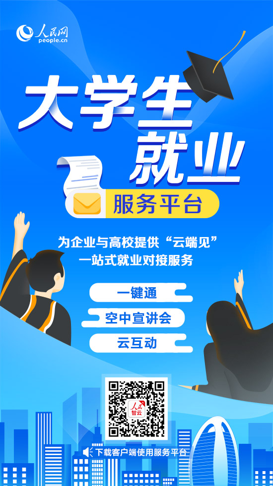 掃描二維碼下載人民智云客戶端,打開(kāi)“校招”頻道,使用大學(xué)生就業(yè)服務(wù)平臺(tái)