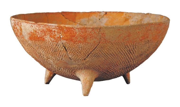 寬帶紋三足彩陶缽: