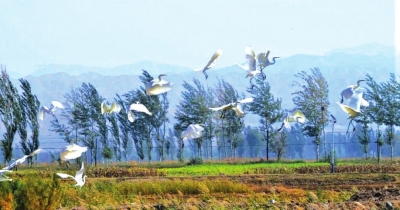 秋日的白銀天高云淡,風(fēng)輕氣爽。隨著一年的稻田收割,成群的白鷺和野鴨等鳥類棲息在景泰縣五佛鄉(xiāng)成片的稻田、魚塘附近,或低空飛翔,或嬉戲覓食,形成一幅自然和諧的美麗畫卷?!?/p>