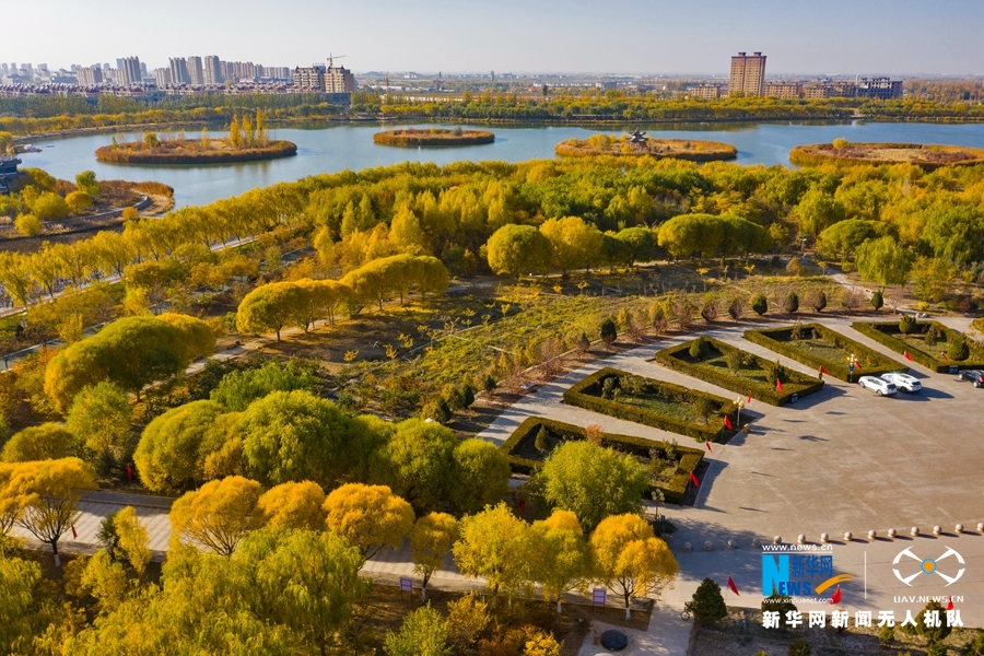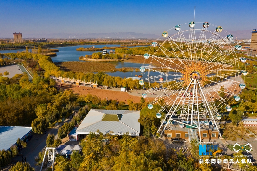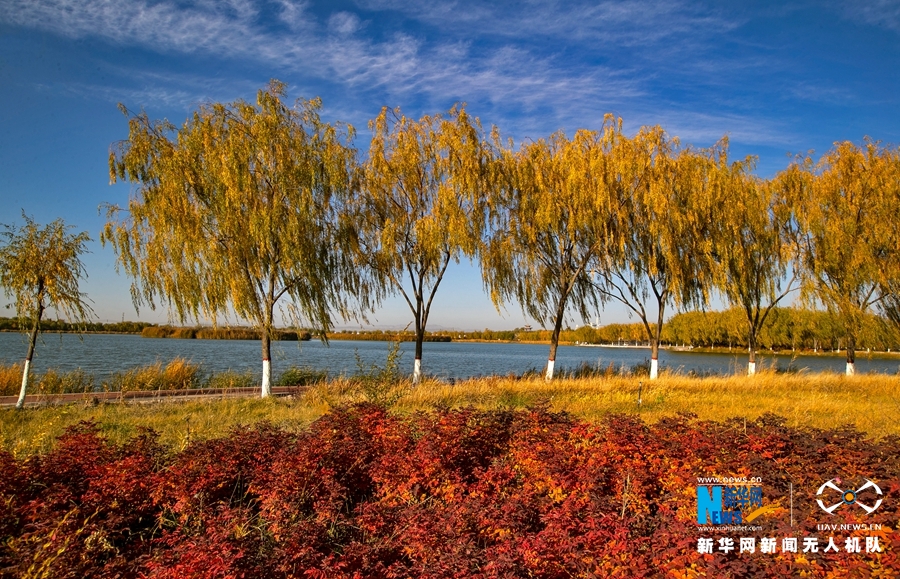 深秋時(shí)節(jié),國(guó)家4A級(jí)景區(qū)甘肅省張掖潤(rùn)泉湖公園秋水依依,草木金黃,呈現(xiàn)出一幅斑斕畫卷。新華網(wǎng)發(fā)(成林 攝)