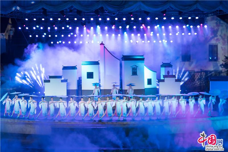 實(shí)景藝術(shù)的舞美意境,流光溢彩的視覺設(shè)計(jì),優(yōu)雅震撼的音樂效果,浪漫風(fēng)趣的舞蹈展現(xiàn),自然沉浸的情景表演,一幕幕再現(xiàn)著中國第一水鄉(xiāng)的文化底蘊(yùn)和浪漫情韻。