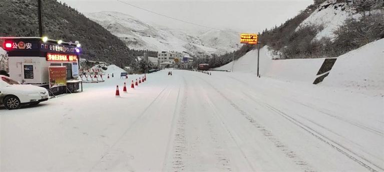 雪落隴原 定西岷縣境內(nèi)路面濕滑