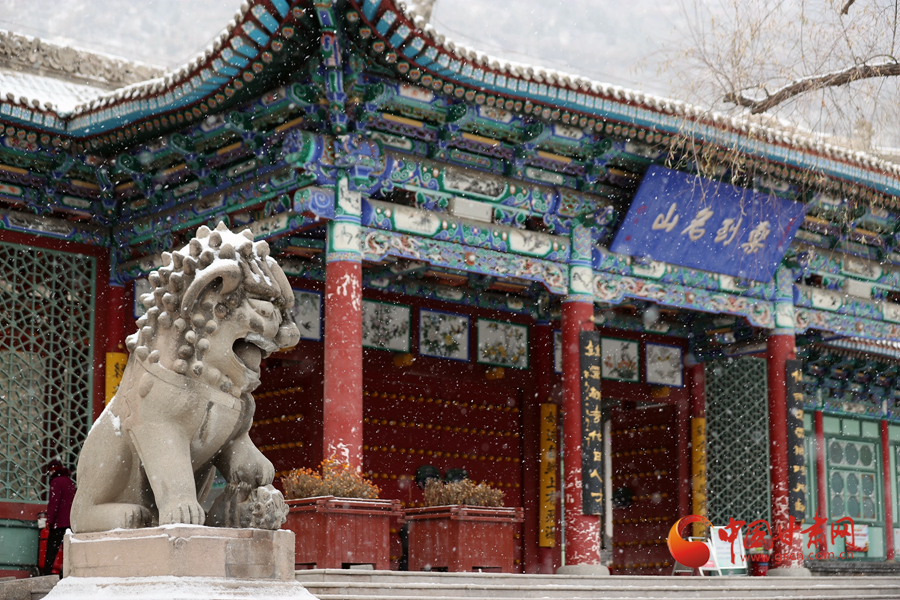 雪中的石獅在威嚴(yán)中多了幾分俏皮