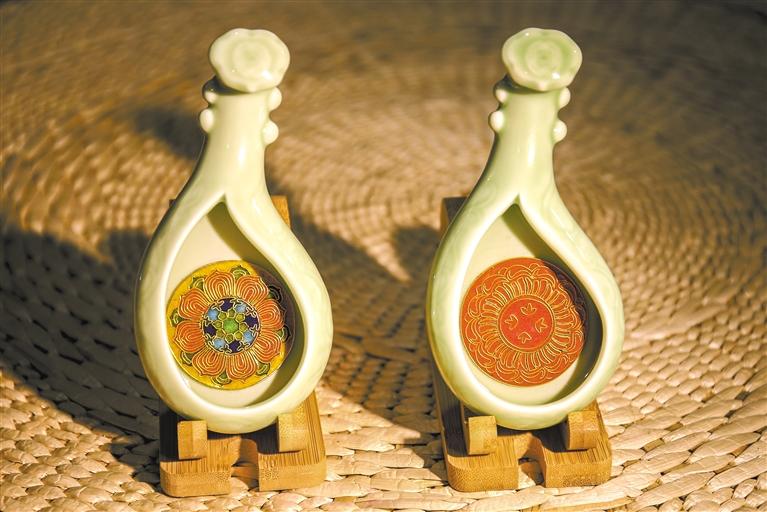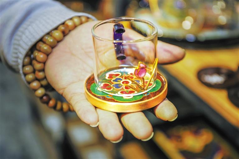 環(huán)顧李海明琺瑯?biāo)囆g(shù)館,工藝的極致與色彩的沉淀,令人震撼,在這位50多歲的中年男子的腦海里,總有新鮮的點子涌現(xiàn)。他告訴記者,他正在和一家古箏廠家合作,將他的琺瑯?biāo)囆g(shù)運用于古箏這一傳統(tǒng)樂器,讓傳統(tǒng)文化融入當(dāng)代生活。