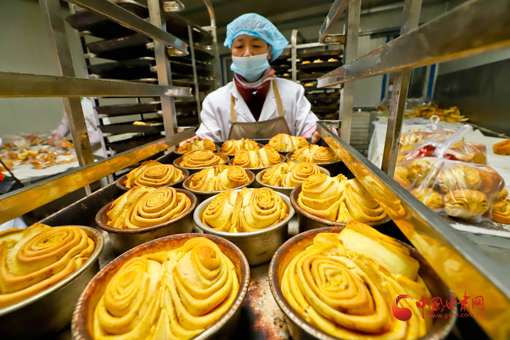 1月6日,甘肅民樂縣隴上鄉(xiāng)村農(nóng)業(yè)科技公司鄉(xiāng)村饃饃加工車間里員工正在精心制作“祥龍花饃饃”。