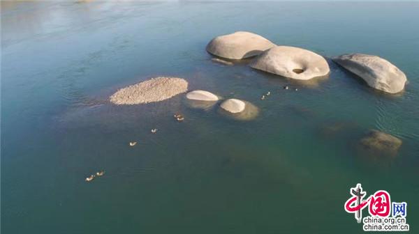 1月12日,在湖南桃江羞女湖國家濕地公園當(dāng)?shù)財z影家協(xié)會成員用無人機(jī)有幸拍到一群正在資江戲水的野生保護(hù)物種——斑嘴鴨。