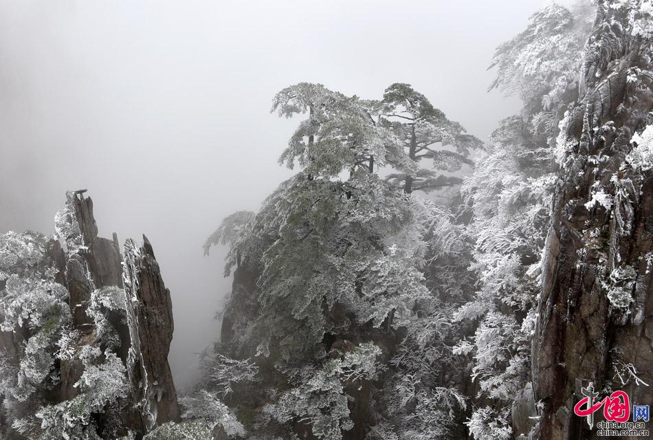 原標(biāo)題:陽(yáng)春三月黃山風(fēng)景區(qū)出現(xiàn)霧凇奇觀(高清大圖)