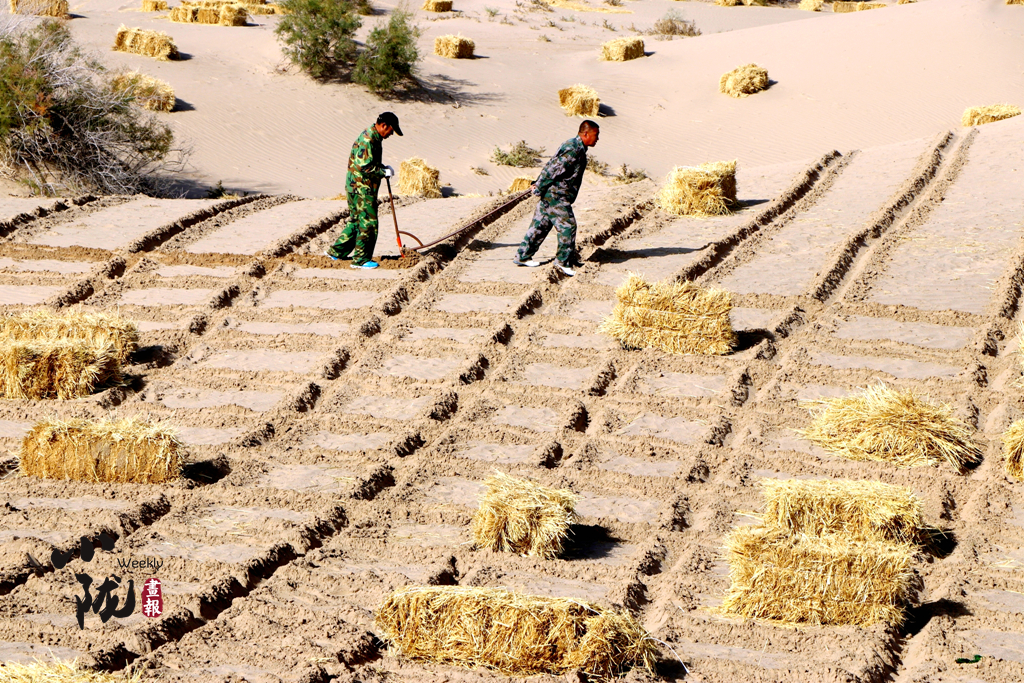 他們帶著干糧、扛著工具,長期披星戴月地在沙漠邊緣地帶壓沙種樹,并創(chuàng)造性地探索出了“民勤模式”。