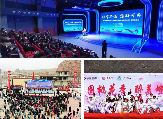 全省推出21條精品旅游產(chǎn)品投放在12306APP“鐵路游”版塊,其中包括“環(huán)西部火車游·暢游甘青寧新蒙五省游”“環(huán)西部火車游·經(jīng)典絲路五日游”“環(huán)西部火車游·甘寧全景八日游”“環(huán)游大西南”等4條旅游專列線路。4月1日起,敦煌市航班增加并恢復(fù)張掖、嘉峪關(guān)等熱門旅游城市航點(diǎn);節(jié)前在浙江、江蘇、湖北等地舉辦“暢游交響絲路·啟航如意甘肅”文化旅游推介營銷活動(dòng),打響甘肅文旅宣傳營銷、“引客入甘”的開門紅。中川機(jī)場即將開通“杭州—恩施—蘭州”“南京—延安—蘭州”等新航線,搭建起“空中絲綢之路快線”。全省內(nèi)各地大力豐富文化旅游產(chǎn)品供給,如嘉峪關(guān)“尋回古畫中的盎然春意”主題活動(dòng)、定西“山花爛漫,絕美景色藏不住”宣傳專題,臨夏唐汪杏花旅游節(jié)、平?jīng)鲠轻忌教一ü?jié)等;紅軍西路軍古浪戰(zhàn)役紀(jì)念館、八步沙六老漢防風(fēng)冶沙現(xiàn)場等成為開展黨史教育、研學(xué)活動(dòng)的重要場所。