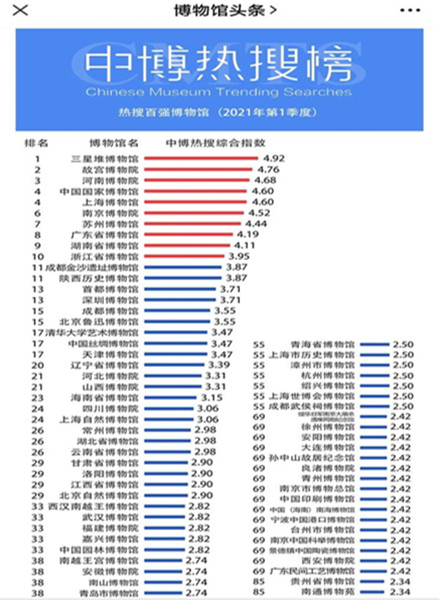 原標(biāo)題:一季度全國博物館熱搜榜發(fā)布 三星堆首登榜首