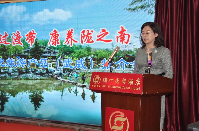 胡桂蕓在致辭中說,隴南和武威兩市文化旅游資源各具特色、互有優(yōu)勢,具有很強的差異性和互補性,隨著“一帶一路”建設的深入推進,兩地經(jīng)濟社會和文化旅游的交流將更加活躍。尤其是環(huán)西部火車游旅游專線列車的開通,更加拉近了兩地的時空距離,極大地方便了兩地游客的出行。通過今天的推介活動,我們希望參加會議的旅行社、自駕游俱樂部,多組織武威的游客來隴南觀光旅游、康養(yǎng)休閑。同時,也希望隴南的文旅部門及旅游景區(qū)、旅行社提供各種優(yōu)惠以及優(yōu)質(zhì)服務,為促進兩地文化旅游事業(yè)的合作共贏做出積極的貢獻。