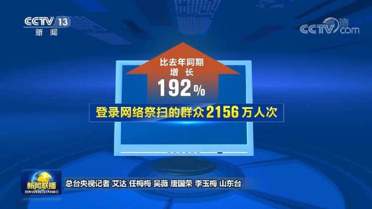 央視網(wǎng)消息(新聞聯(lián)播):今年清明節(jié)假期,我國(guó)旅游市場(chǎng)供給豐富、安全形勢(shì)總體平穩(wěn),網(wǎng)絡(luò)祭掃人次明顯增加。
