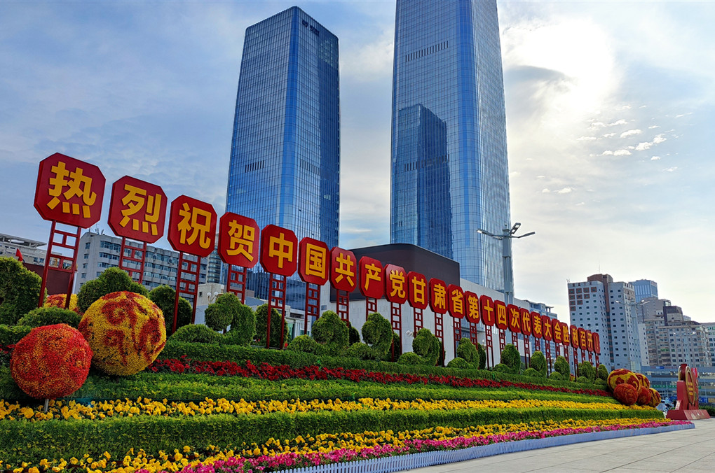 蘭州市東方紅廣場全新的花壇喜迎省第十四次黨代會