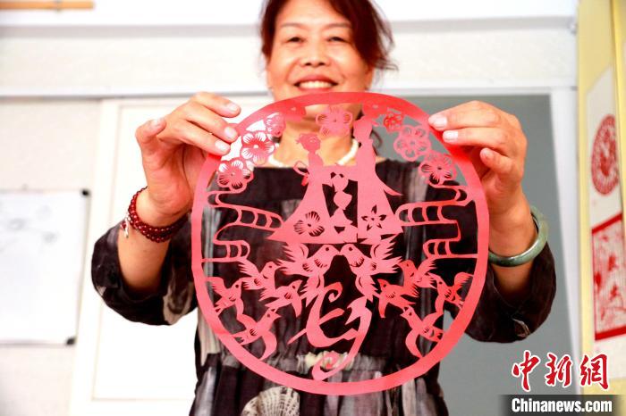 原標(biāo)題:山東高密:非遺傳人巧手剪紙迎“七夕”