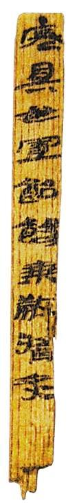 1990年這枚木簡(jiǎn)出土于敦煌懸泉置遺址,現(xiàn)藏甘肅簡(jiǎn)牘博物館。長(zhǎng)7.7厘米、寬0.8厘米、厚0.2厘米。木簡(jiǎn)下部殘缺,字跡清楚,簡(jiǎn)文作“寒具毋置飴餳乘□醬炙”,其中提到的“飴餳”即兩種糖類之名,該簡(jiǎn)文為研究?jī)蓾h時(shí)期河西飲食習(xí)俗和制糖史提供了資料。