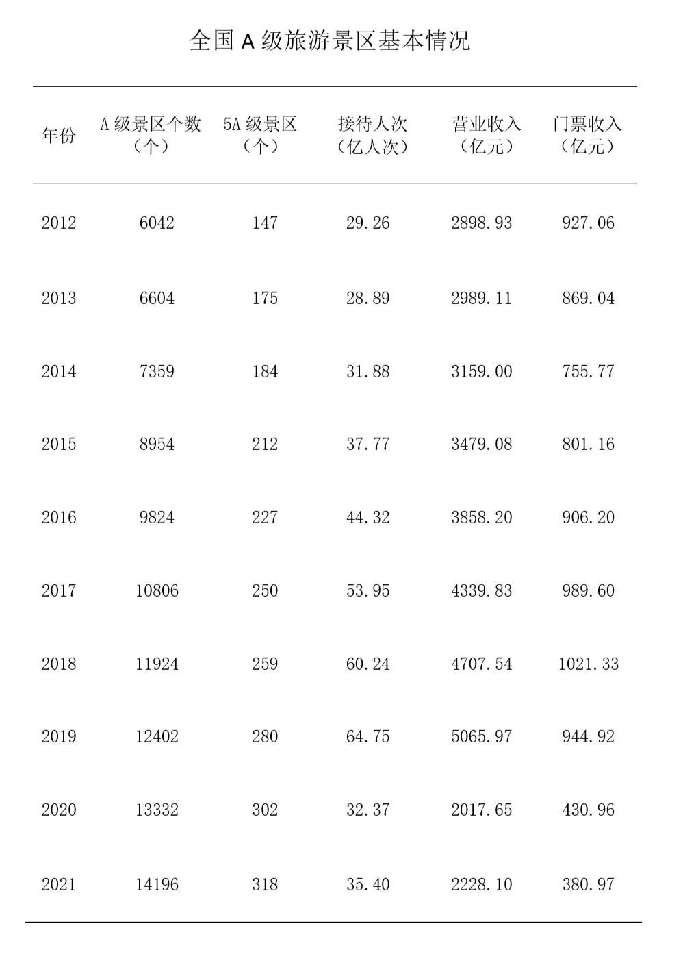 統(tǒng)計(jì)數(shù)據(jù)顯示,2021年全國A級(jí)旅游景區(qū)個(gè)數(shù)達(dá)到14196個(gè),全國A級(jí)旅游景區(qū)接待游客35.4億人次。