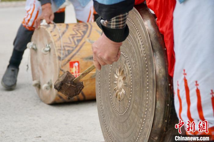 圖為白褲瑤居民正在敲擊銅鼓。韋國(guó)政 攝