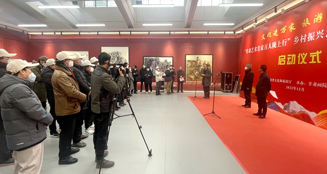 12月17日上午,“甘肅藝術(shù)名家百人隴上行”鄉(xiāng)村振興藝術(shù)創(chuàng)作工程采風(fēng)活動(dòng)在甘肅畫院正式啟動(dòng),來自全省各地的藝術(shù)家從蘭州黃河之濱,奔赴甘南、隴南兩地重點(diǎn)旅游示范村開展創(chuàng)作采風(fēng)活動(dòng)。省委宣傳部副部長(zhǎng)、省文旅廳黨組書記何效祖出席啟動(dòng)儀式并講話。省文化和旅游廳黨組成員、副廳長(zhǎng)萬學(xué)科主持啟動(dòng)儀式,甘肅畫院院長(zhǎng)王萬成,甘肅文旅集團(tuán)黨委副書記、工會(huì)主席王寧等出席啟動(dòng)儀式。