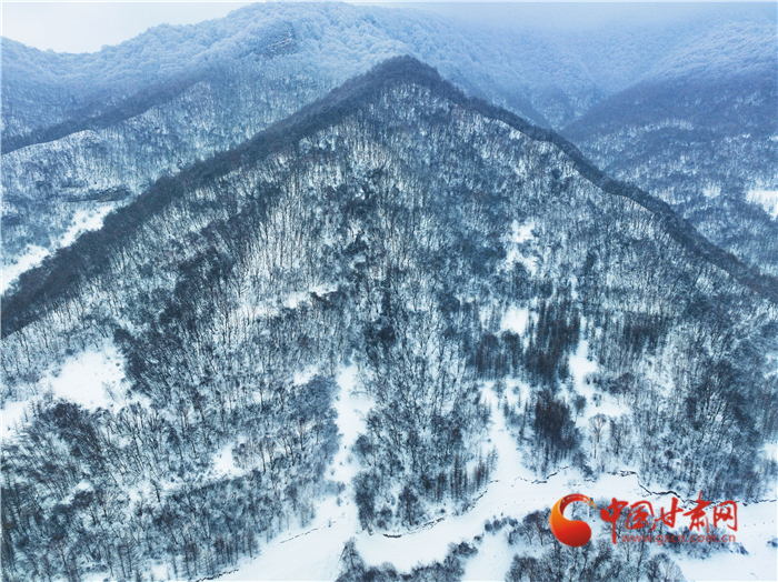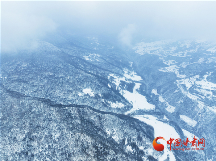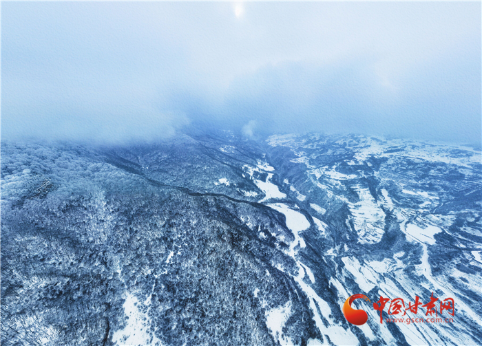 雪花像是美麗的精靈飄落山間,又像是上帝手中的畫筆,勾勒出了一幅優(yōu)美的水墨世界,正如詩句一樣“白雪卻嫌春色晚,故穿庭樹作飛花”。遠(yuǎn)處大霧又為關(guān)山蓋上了神秘的面紗,層層疊疊,仙氣繚繞,令人嘆為觀止。