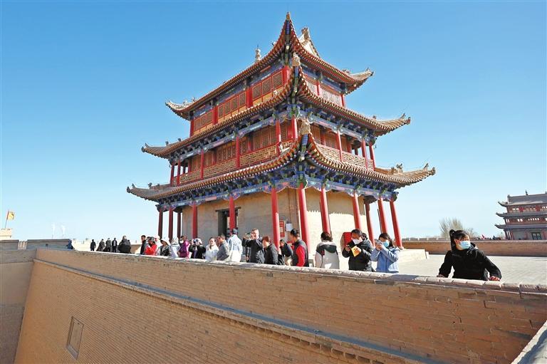 3月4日,游客在嘉峪關(guān)關(guān)城景區(qū)參觀游覽。春暖復(fù)蘇,甘肅省不少古絲綢之路節(jié)點(diǎn)城市喜迎旅游開門紅。在擁有世界文化遺產(chǎn)的甘肅省嘉峪關(guān)市,歷史文化古跡、現(xiàn)代主題樂園、夜市等景點(diǎn),都吸引了不少游客前來游覽體驗(yàn)。今年以來,當(dāng)?shù)赝瞥鑫穆孟M(fèi)券、景點(diǎn)優(yōu)惠套票、獎(jiǎng)補(bǔ)扶持政策等一系列措施,提振文旅消費(fèi)市場信心,助推絲路文旅產(chǎn)業(yè)強(qiáng)勁復(fù)蘇。