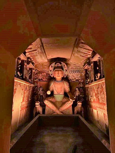 本次展覽從敦煌研究院引進(jìn)了敦煌最早的石窟之一、北涼三窟中最大的275窟的復(fù)制窟,觀眾可以沉浸式體驗1∶1數(shù)字化、高保真復(fù)制的經(jīng)典藝術(shù)窟,身臨其境地走進(jìn)敦煌莫高窟。
