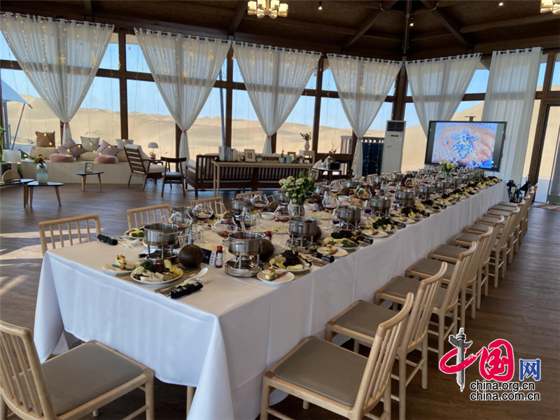在星星酒店的360°全景餐廳、星空餐廳、沙漠美食城,感受寧夏灘羊肉與賀蘭山東麓葡萄美酒完美相遇的極致體驗(yàn),品味美食在舌尖、美景在眼前的愜意生活,還有特制下午茶、自助沙漠小火鍋可滿足游客的不同味蕾。