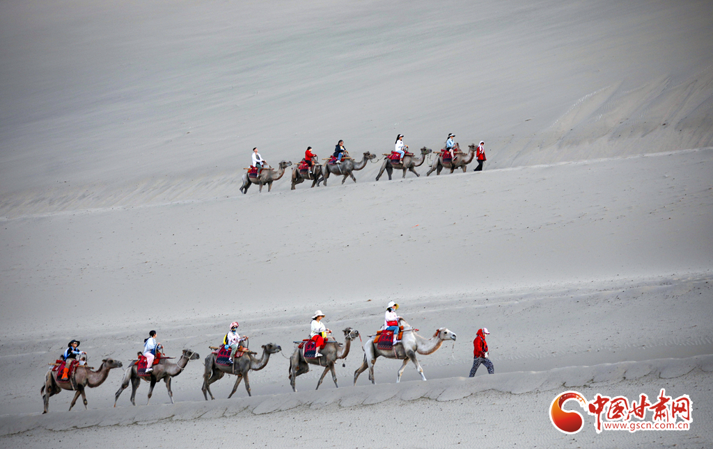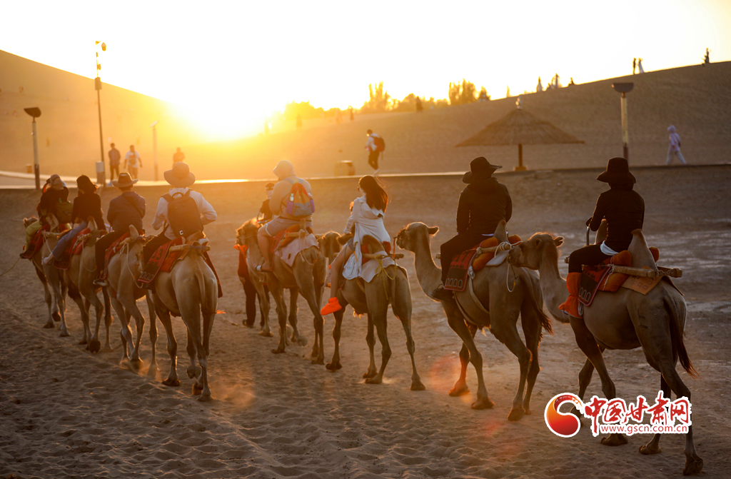【隴拍客】敦煌駱駝排隊“上班” 千年絲路令游客“神往”