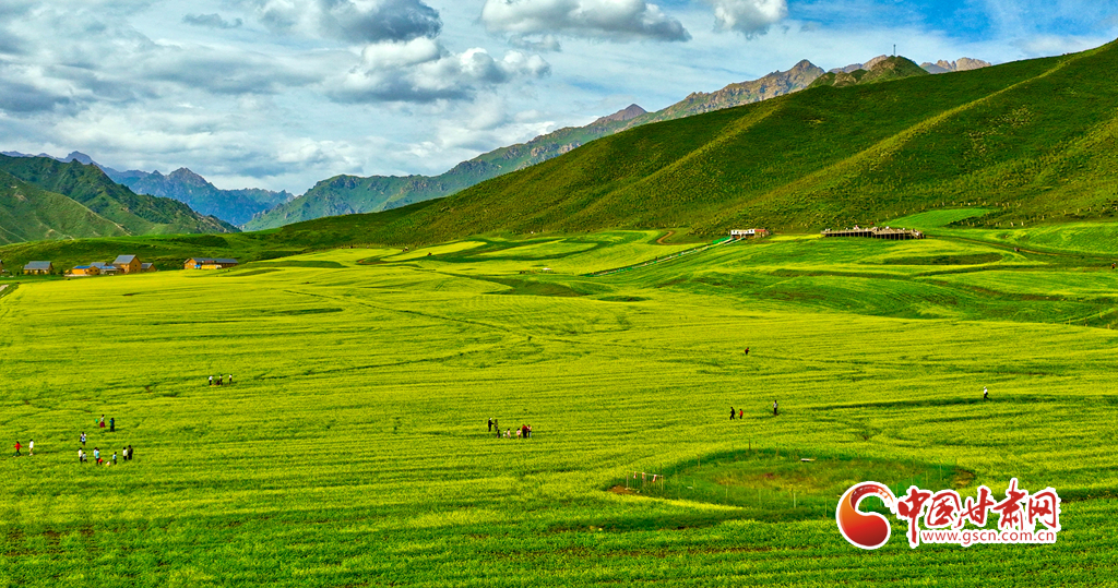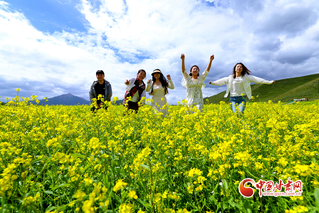 連日來(lái),甘肅省張掖市民樂縣萬(wàn)畝油菜進(jìn)入盛花期,金黃的油菜花海與草原綠野相連,在藍(lán)天白云的映襯下美不勝收,成為河西走廊地區(qū)的一道別致風(fēng)景,吸引了眾多國(guó)內(nèi)外游客前來(lái)觀光旅游。