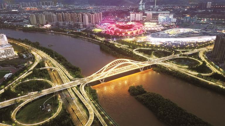 蘭州,不僅是“全國文明城市”“國家園林城市”“中國最具投資吸引力城市”“營商環(huán)境創(chuàng)新城市”“最具文旅投資價(jià)值城市”,更成為了國內(nèi)最受歡迎的十大避暑城市之一和游客數(shù)量增長最快的十大“網(wǎng)紅城市”之一。圖為深安大橋和奧體中心、萬達(dá)茂美麗夜景。