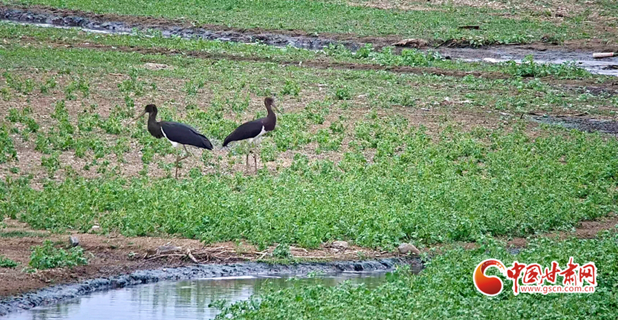 近日,山丹縣濕地保護站工作人員在開展候鳥監(jiān)測工作時發(fā)現(xiàn)14只被稱為“鳥中大熊貓”的黑鸛。