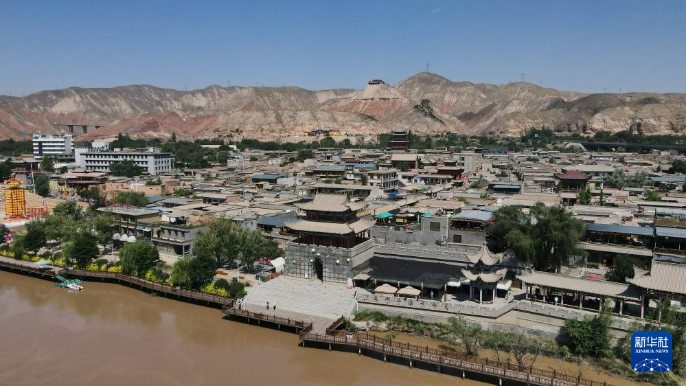 這是位于甘肅省蘭州市西固區(qū)黃河北岸的河口古鎮(zhèn)。河口古鎮(zhèn)歷史悠久、文化底蘊(yùn)深厚,現(xiàn)留存商賈碼頭、戰(zhàn)略要塞、交通樞紐等遺跡(7月9日攝,無(wú)人機(jī)照片)。新華社記者 陳斌 攝
