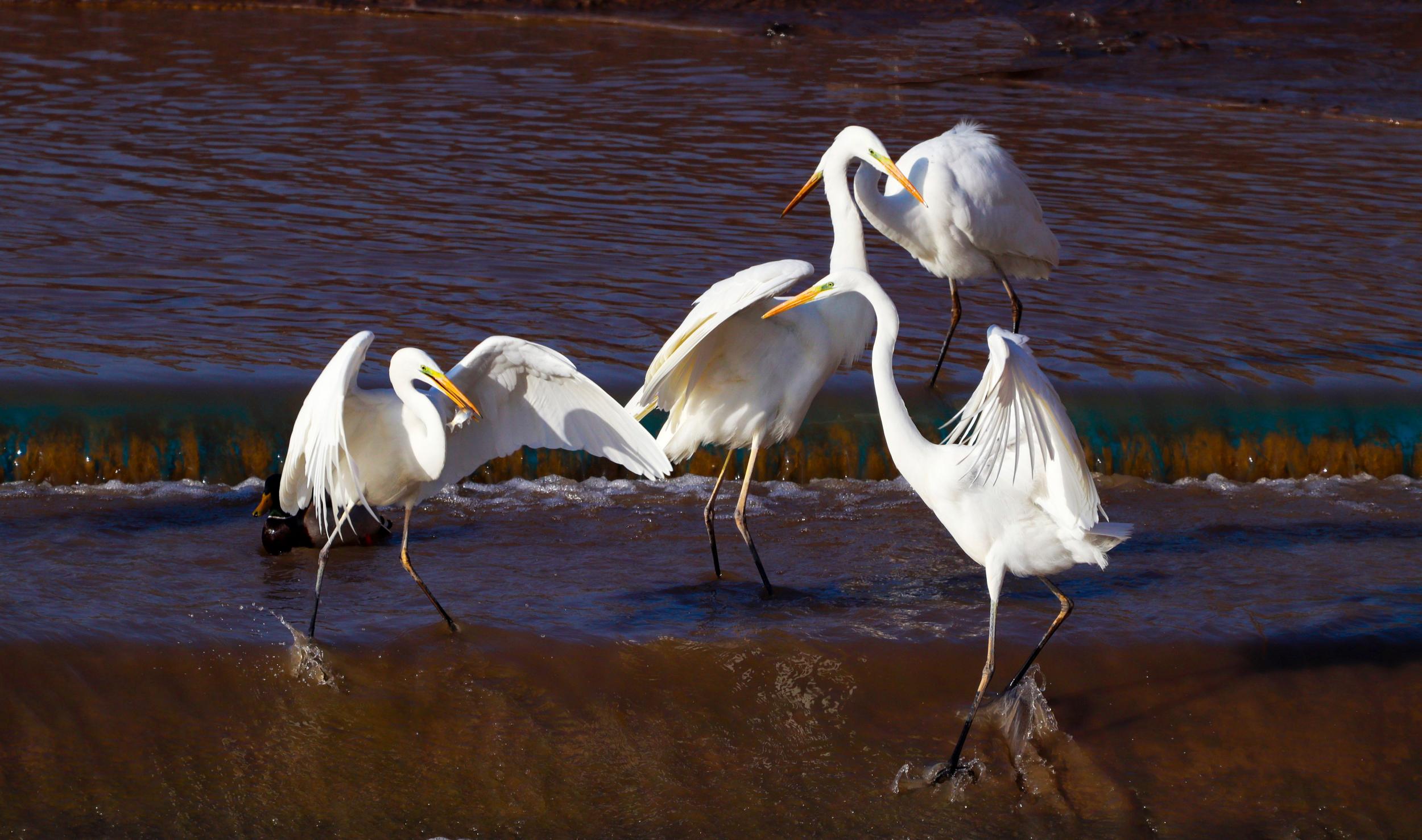 近日,在崇信縣汭河,一群白鷺時(shí)而展翅高飛,時(shí)而在水里嬉戲、覓食,構(gòu)成了一幅美麗的自然生態(tài)畫卷。