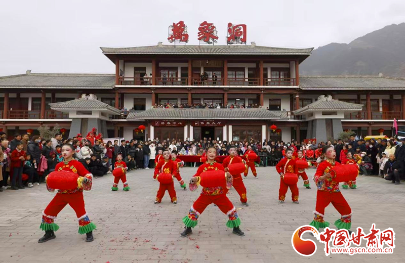 2024年2月21日,在甘肅省隴南市國(guó)家AAAA級(jí)景區(qū)——武都區(qū)萬(wàn)象洞風(fēng)景名勝區(qū),當(dāng)?shù)厝罕娊M織的社火表演隊(duì)正在演出。