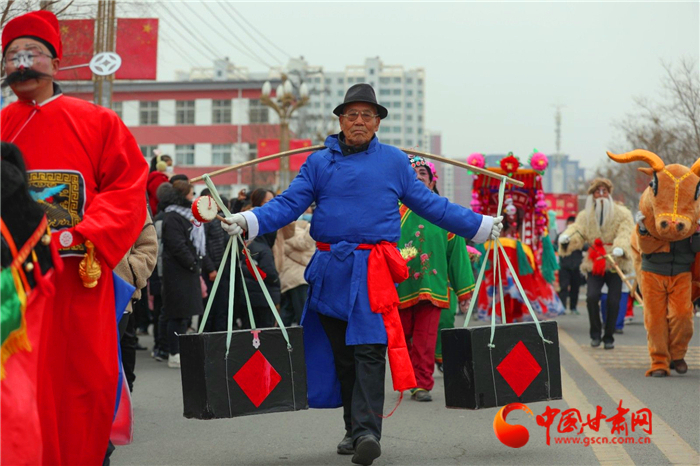 上午9時(shí),來(lái)自蓮花鎮(zhèn)、五營(yíng)鎮(zhèn)、隴城鎮(zhèn)、郭嘉鎮(zhèn)、秦安血漿站等17個(gè)鎮(zhèn)5個(gè)行業(yè)企業(yè)的1300余名隊(duì)員們伴著寒風(fēng)雪花,以特有的喜慶方式向全縣群眾拜年,為全縣各族群眾送上了一份別具特色的新年禮物。