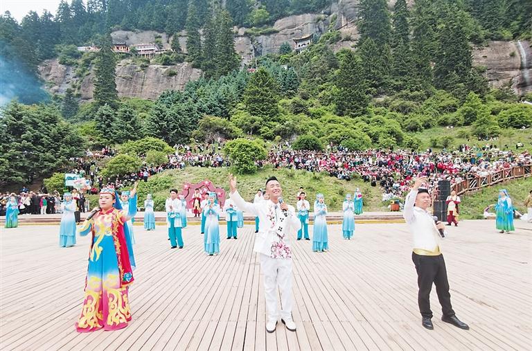 《恭喜曲》《我在家臨夏》《尕老漢》《園子里長的綠韭菜》《尕妹門前浪三趟》……巡演途中,花兒歌手輪番演唱,讓游客沉浸式感受松鳴巖花兒會的獨(dú)特魅力。