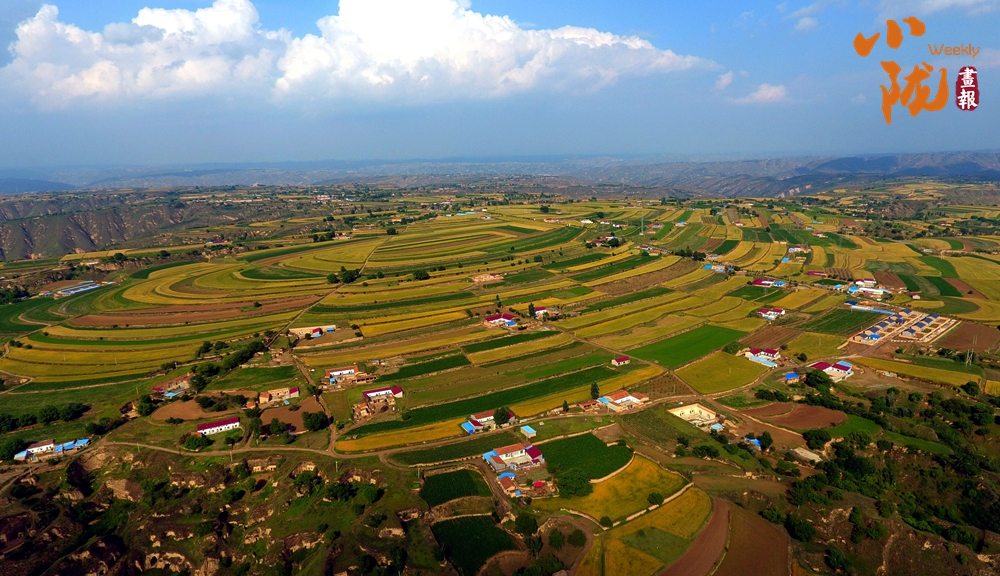 從高空俯瞰下去,在廣袤的大地上,丘陵被開辟成了一層又一層的梯田,金黃的麥浪和嫩綠的秧苗鋪滿田間。