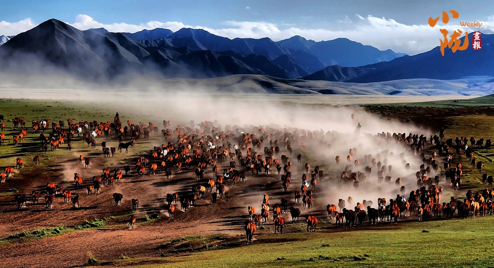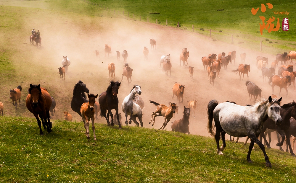 這里有比塞罕壩更壯觀的萬馬奔騰。藍(lán)天白云下,一匹匹雄健的駿馬在疾風(fēng)中奔馳,從一望無際的草場上呼嘯而過,長鬃飛揚,浩浩蕩蕩。