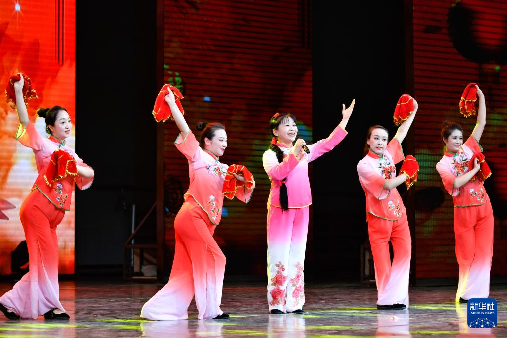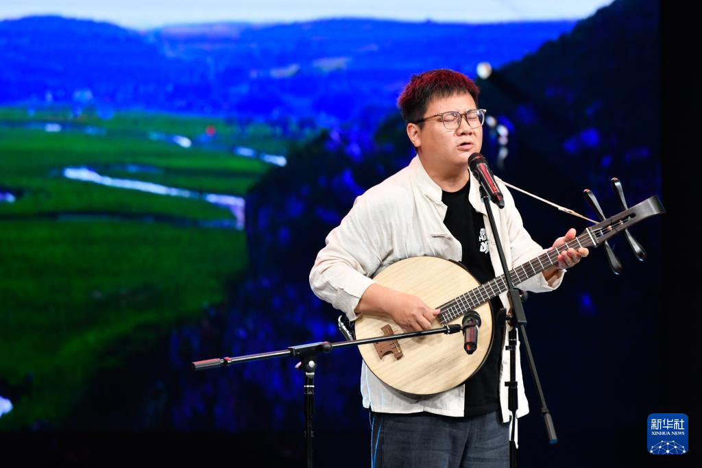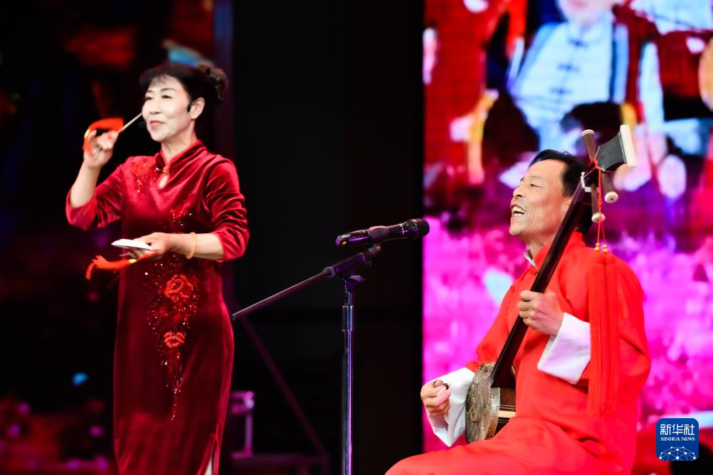 7月12日,演員演唱蘭州鼓子《奮楫篤行續(xù)輝煌》。新華社記者 郎兵兵 攝