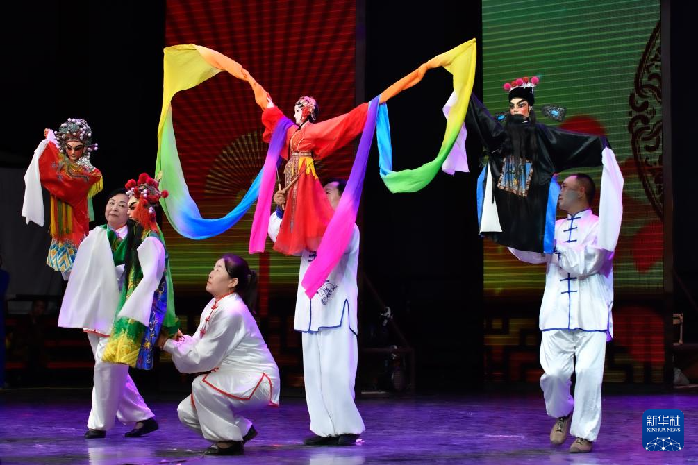 7月12日,演員表演金昌木偶戲《秦聲秦韻》。新華社記者 郎兵兵 攝